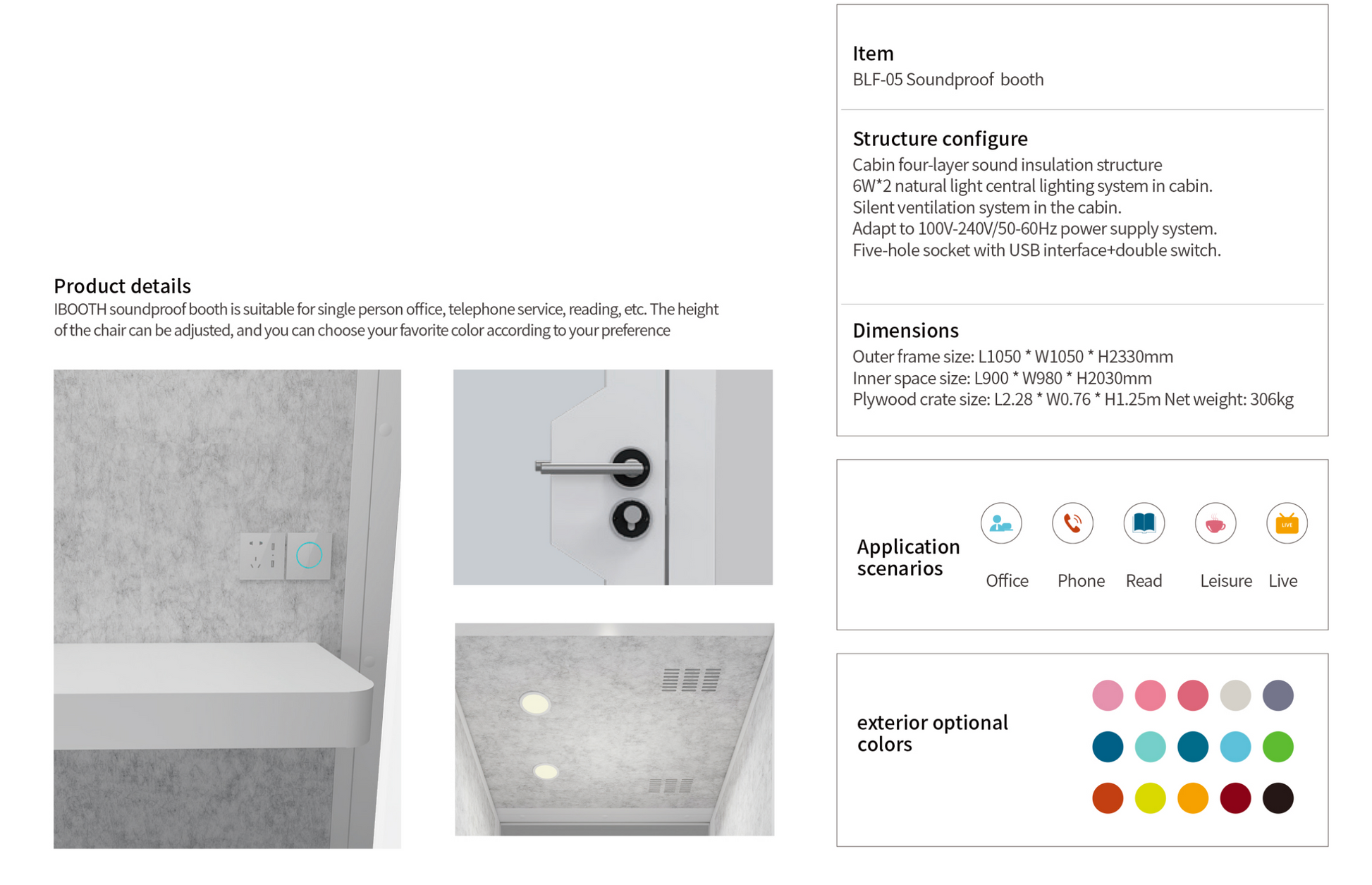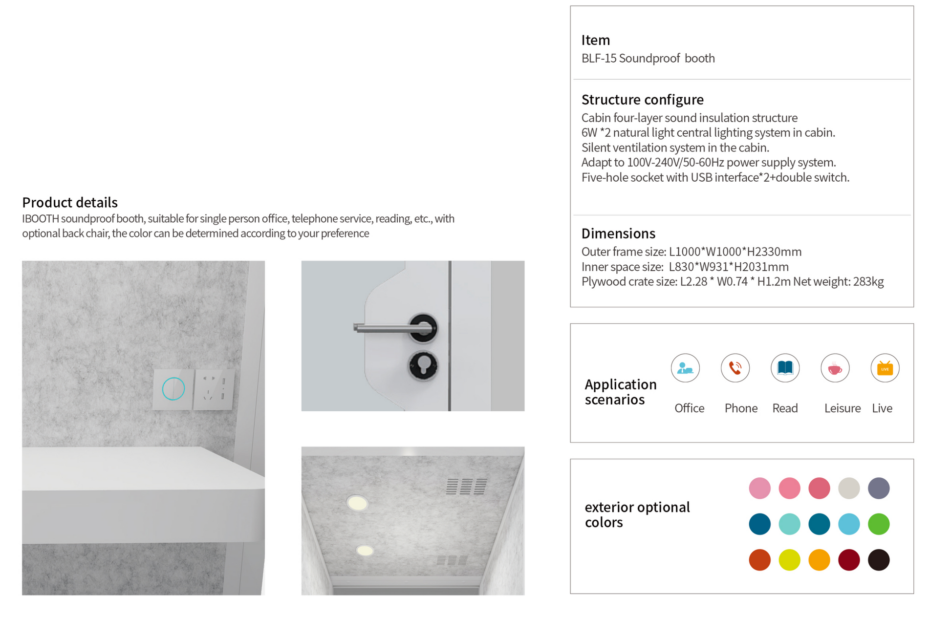 Inner space size: L830* W931* H2031mm