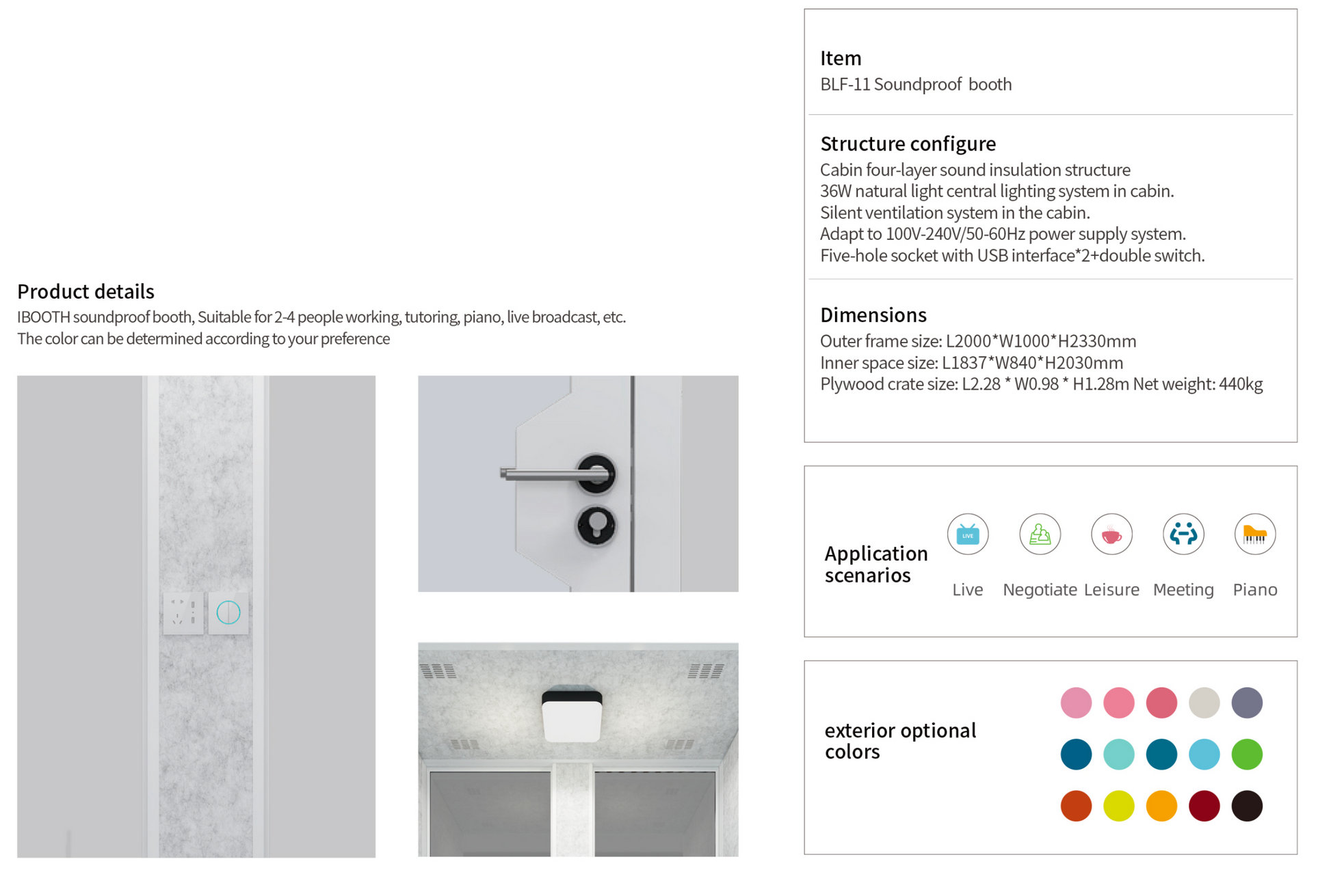 Silent Box Sound Booth LED with Lighting Centrifugal Fans and AC USB Ports XL for 8 Persons